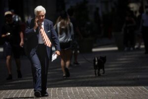 A man talks on his phone during a heatwave in BY Reuters • May 19, 2023 FILE PHOTO: A man talks on his phone during a heatwave in the financial district in New York City, U.S., July 19, 2022. REUTERS/Brendan McDermid