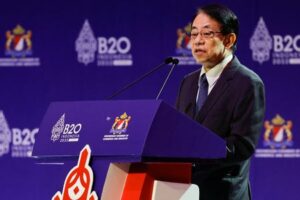 FILE PHOTO: President of Asian Development Bank (ADB) Masatsugu Asakawa addresses on Promoting Sustainable Investment to Achieve Carbon Neutrality, during the B20 Summit, ahead of the G20 Summit in Nusa Dua, Bali, Indonesia, November 13, 2022. REUTERS/Willy Kurniawan