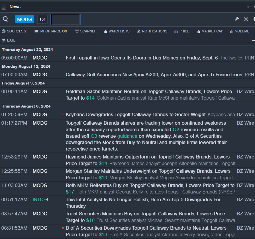 - Benzinga Pro’s real-time newsfeed alerted to latest MODG news.