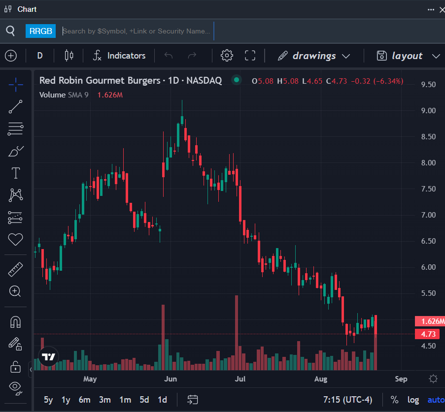 - RRGB Price Action: Shares of Red Robin fell 6.3% to close at $4.73 on Thursday.